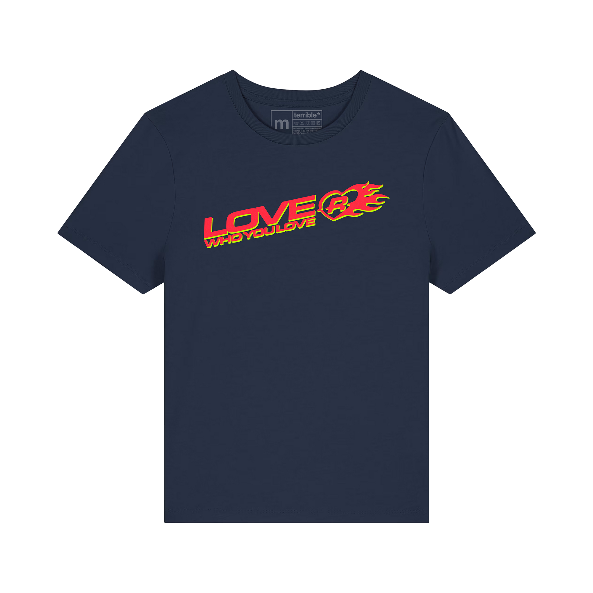 Limited edition ‘Love ‘Who You Love t-shirts available, designed by texas.ldn and Vic Lentaigne featuring a screen printed design on navy short sleeved tee